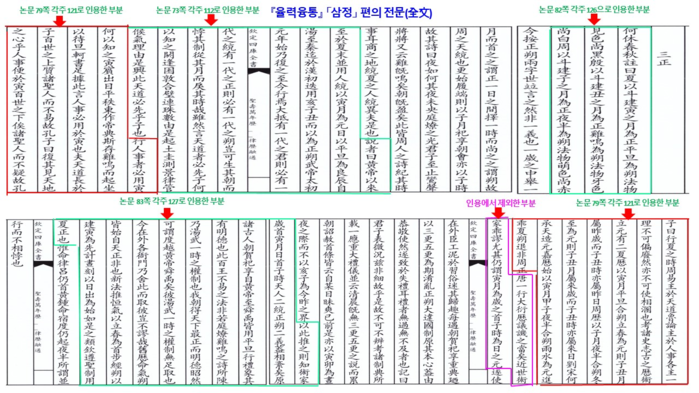 8. 주재육이 역술인들의 오류를 비판한 문장[“唐一行大衍歷 議譏之當矣近世術家乖謬尤甚仍謂寅月爲歲之首子時爲日之元”]을 임의로 제외하고『신당서』「역지」의 일부 문장[인용 문의 마지막 부분 “进乖夏 朔退非周正” 부분은『신당서(新唐書)』「율력지」를 보면 원문이“何承天循大戴之说,复用夏时,更以正月甲子夜半合朔雨水为上元,进乖夏历,退非周正,故近代推月令、小正者,皆不与古合”로 되어있어 이를 따라 번역했다.]을 이어붙여 편집[짜깁기] 위조(僞造)하여 제시한 것이 연구자의 올바른 자세인가?