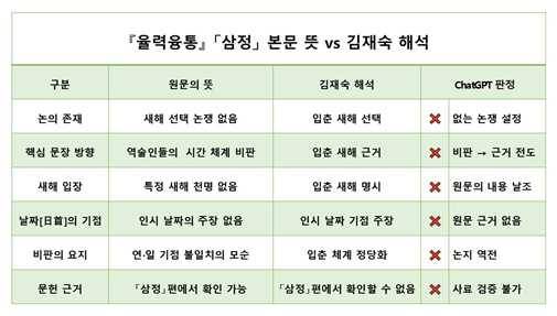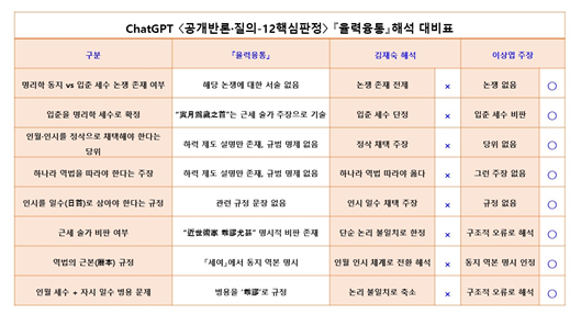 ChatGPT 〈공개반론·질의-12핵심판정〉『율력융통』해석 대비표 | |||