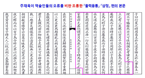 -“주재육은 인월 인시를 기준으로 정삭으로 써야한다고 강력하게 주장했다.”라는 김재숙 박사의 서술은 텍스트의 명시적 결론을 거꾸로 뒤집은 왜곡에 해당