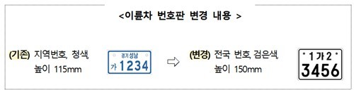| ▲시인성 개선된 이륜차 전국번호판 |