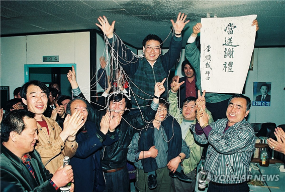 | ▲ 연기 열정 불태운 '영원한 현역' 이순재 별세 현역 '최고령 배우'로 활동해온 배우 이순재가 별세했다. 향년 91세. 유족에 따르면 이순재는 25일 새벽 세상을 떠났다. 이순재는 최근까지 연극 '고도를 기다리며를 기다리며'와 KBS 2TV 드라마 '개소리' 등에 출연하며 왕성하게 활동했다. 사진은 1992년 14대 총선에서 당시 여당인 민주자유당 후보로 서울 중랑갑 선거구에 출마해 당선 축하를 받는 모습. 2025.11.25 [연합뉴스 자료사진] |