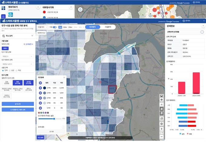 스마트서울맵은 기존에 텍스트나 숫자로만 제공되던 정비사업 추진 현황 등의 정보를 시각적으로 제공한다. 또한, 학령인구 수를 동네별로 50미터 단위로 세분화해 제공하는 '대화형 인구-정책지도'도 함께 제공된다. 시는 올해 시민과 전문가가 함께 선정하는 도시생활지도 10선과 행정-공간정보 융합 우수사례도 발굴할 계획이다.