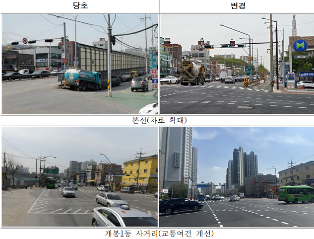서울시는 남부순환로의 1.1km 구간을 기존 30m에서 최대 46m로 확장했다. 오류IC교도 기존 왕복 5차로에서 8차로로 확장해 차량 흐름을 원활하게 했다. 개봉1동사거리 전 방향 좌회전도 신설해 지역 접근성을 개선했다. 이러한 도로구조 개선은 상습 정체 완화에 기여할 것으로 기대된다.