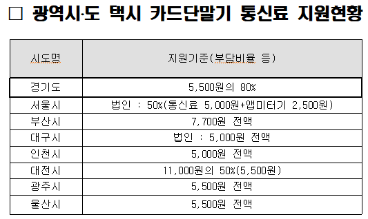 경기도, 개인·법인택시 모두 통신비 80% 지원