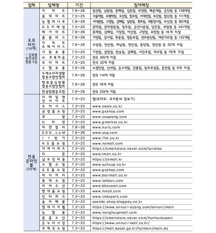 마트 14곳·점포1700여곳·온라인 쇼핑몰 25곳 참여