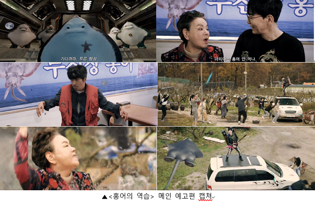 “이 홍어들이 사람들을 미치게 만드는 거라니까요!”라는 대사는 영화의 유머와 혼돈을 동시에 드러낸다. 마지막으로, ‘홍할매’가 외계 홍어를 박력 있게 내리치는 장면과 함께 홍어의 귀여운 비명이 예고편을 유쾌하게 마무리한다.