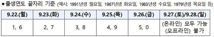 ▲신청 첫 주(9.22.~9.26.) 요일제 운영내용 |