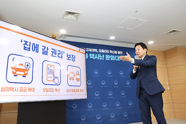 원희룡 국토부 장관은 “당면한 심야 택시 승차난은 국민이 감내할 수 있는 수준을 넘어서고 있어 정부는 국민의 편의를 위해 그동안 뿌리 깊게 유지됐던 택시산업의 불합리한 규제 및 관행을 과감하게 철폐하겠다”고 강조했다.