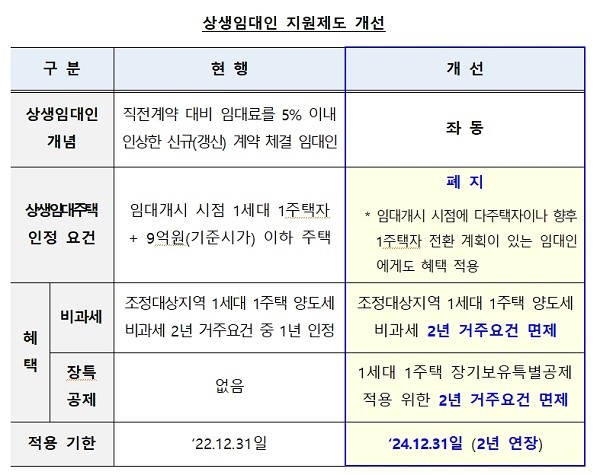 먼저 임대인의 자율적 임대차 가격 안정을 유도할 수 있도록 직전 계약 대비 임차료를 5% 이내로 인상한 상생임대인에 대한 양도소득세 특례 제도를 확대 개편한다.
