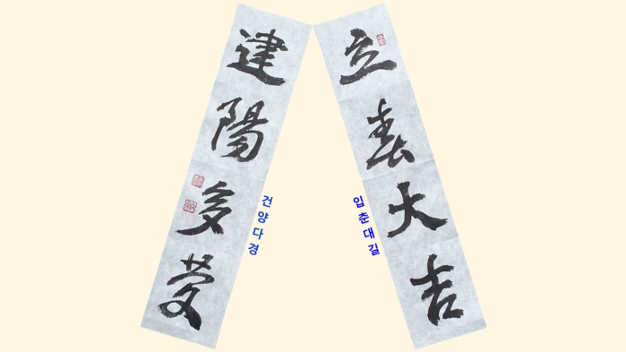 음력 12월과 1월에 번갈아 들어오는 입춘(立春)은 농사짓는 일을 할 수 있는 봄의 시작을 알리는 절기이다. 새봄의 시작을 맞아 크게 길하고, 양기가 많아져 경사가 있기를 기원하면서 입춘대길(立春大吉), 건양다경(建陽多慶)이라는 문구를 대문에 써 붙이는 풍습도 생겼다.