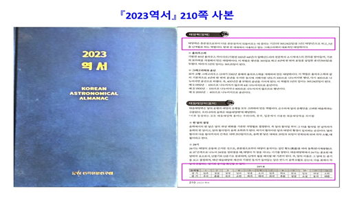 음력과 24절기를 정하는 시헌력법은 동지(冬至), 태양력[그레고리력] 역법은 춘분(春分)으로 역원을 정했다. 따라서 입춘(立春)과 우수(雨水)를 음력 1월 절기…(중략)…소한(小寒)과 대한(大寒)을 음력 12월 절기로 적시한 한국천문연구원 편찬 『2023역서』와 『만세력』의 내용은 현행 시헌력법[절기력]과도 맞지 않고, 태양력[그레고리력] 역법과도 맞지 않는다.