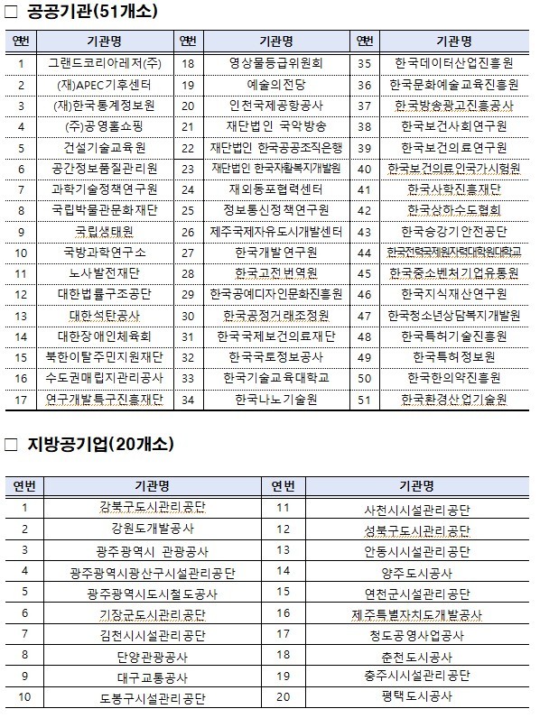 그러나 51개 공공기관과 20개 지방공기업은 결원 부족, 사업 축소 및 경영효율화 등의 이유로 청년고용의무를 지키지 않았다. '청년고용촉진 특별법'에 따르면 공공기관과 지방공기업은 매년 청년을 정원의 3% 이상 신규 채용해야 한다.