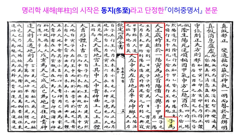 이허중은『이허중명서』에서 동지(冬至)를 명리학 새해로 단정했다(“子為天正,歲時始於一陽”).